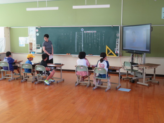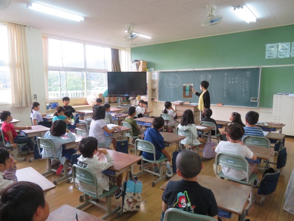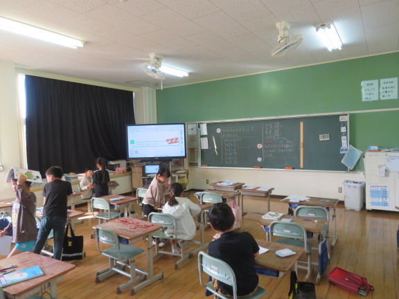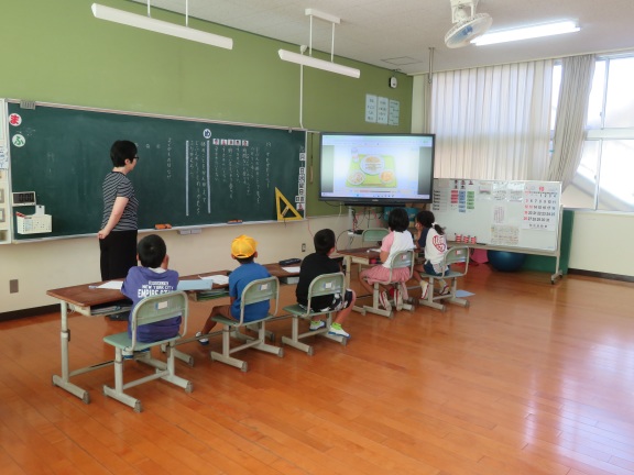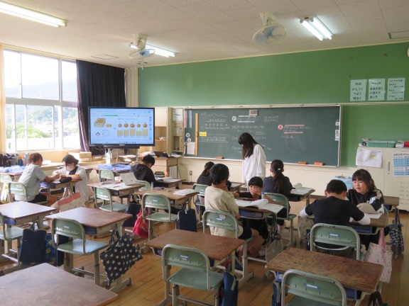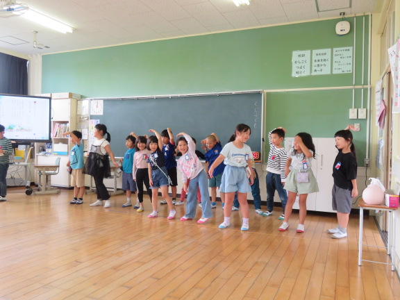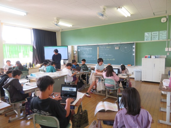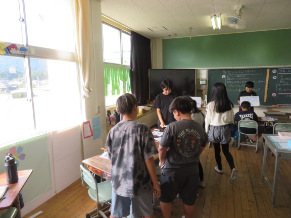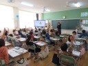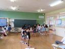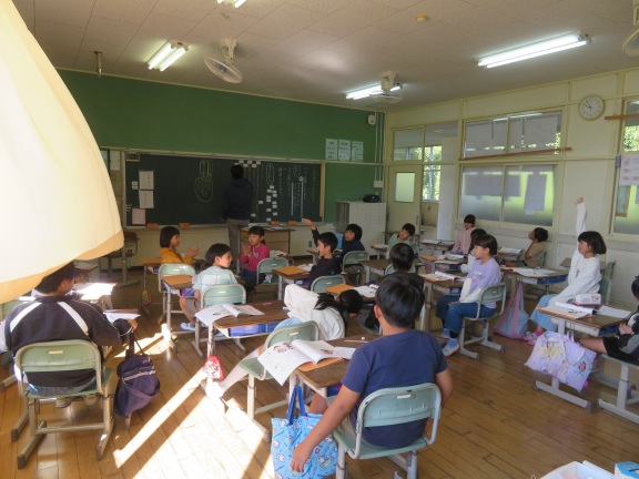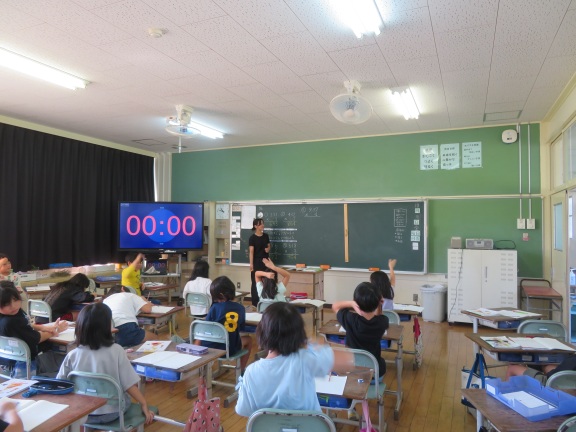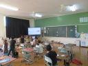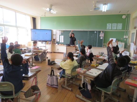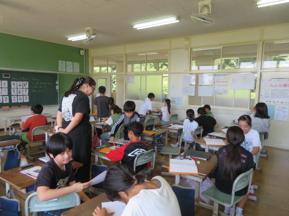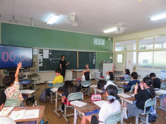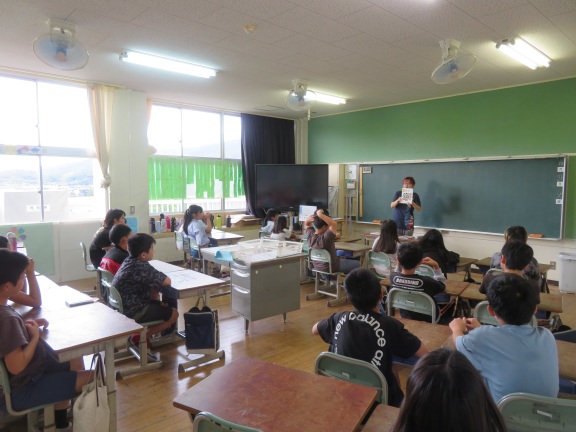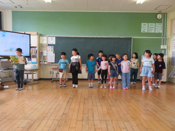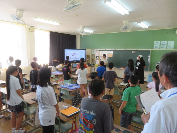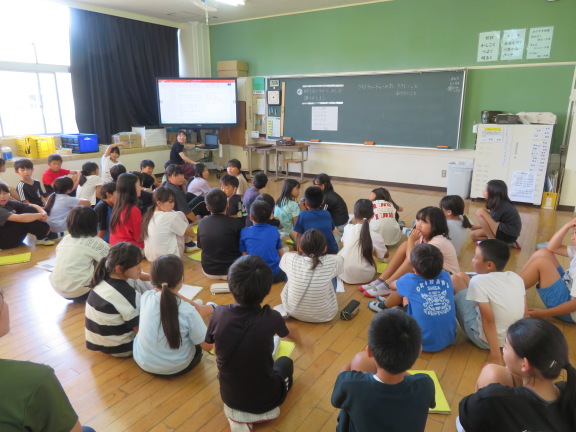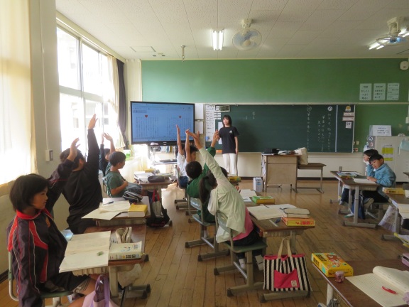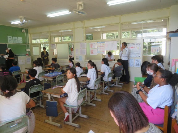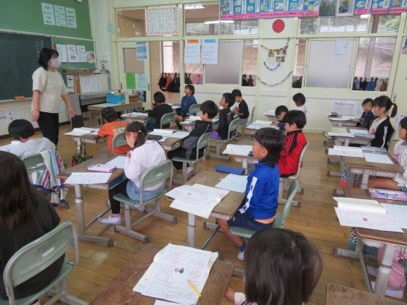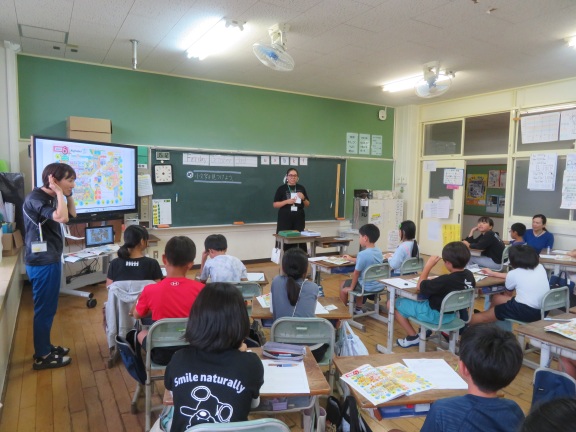 この日は、研究授業として公開し、町内の英語・外国語関係の先生方が参観されました。たくさんの参観者に囲まれながらも、子どもたちは普段と変わらず明るく元気に活動していました。