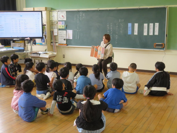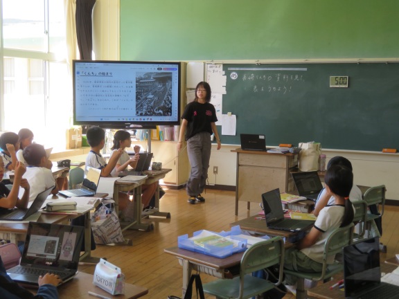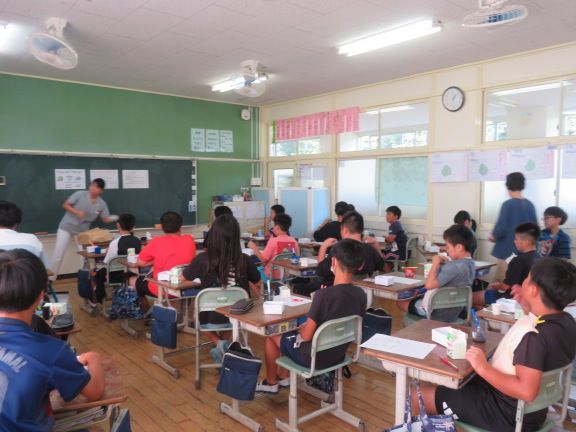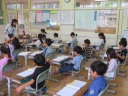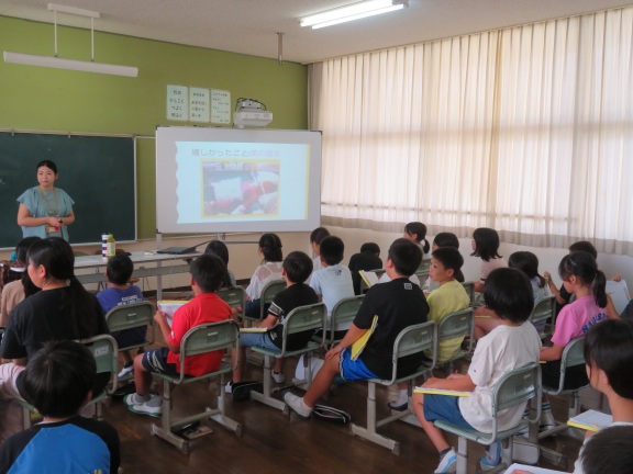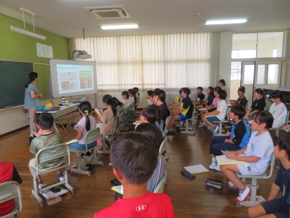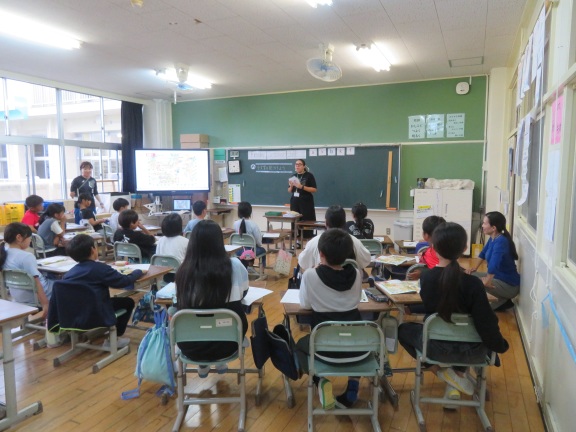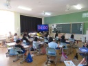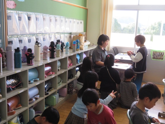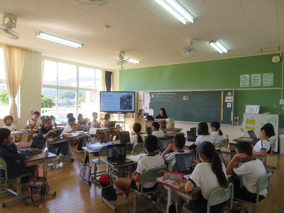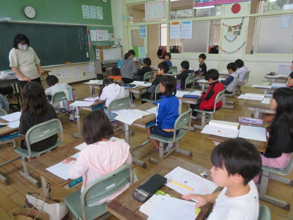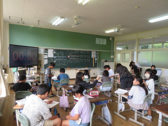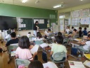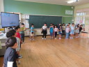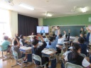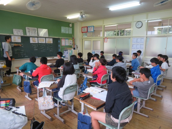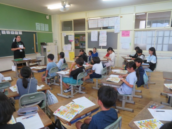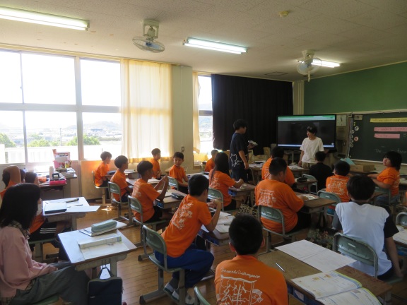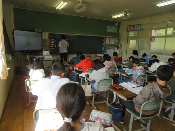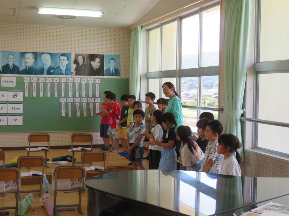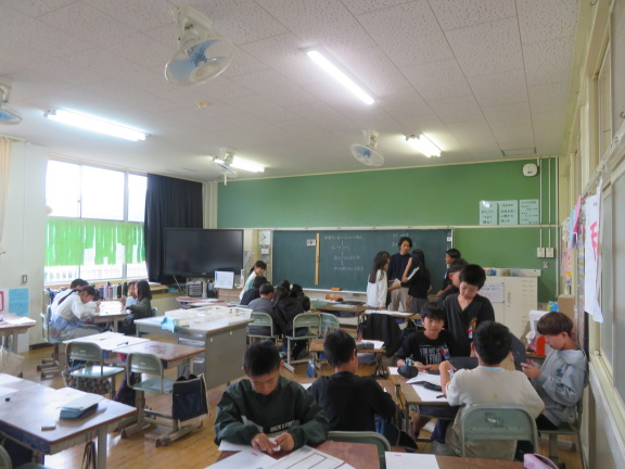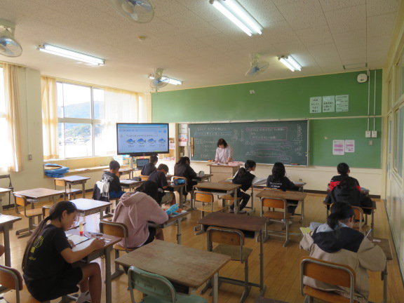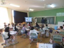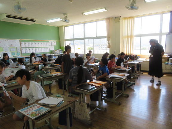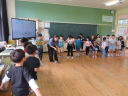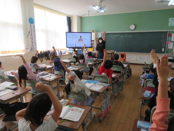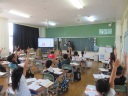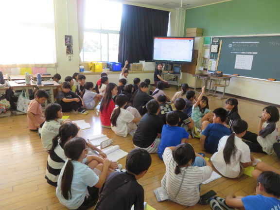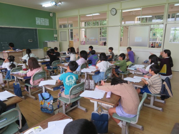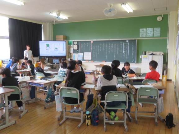 この日は、研究授業として公開し、町内の英語・外国語関係の先生方が参観されました。たくさんの参観者に囲まれながらも、子どもたちは普段と変わらず明るく元気に活動していました。