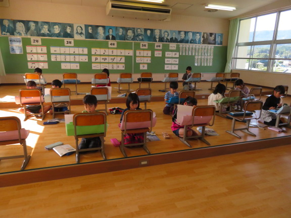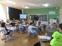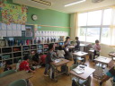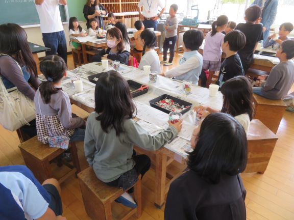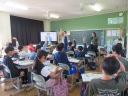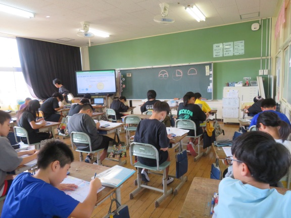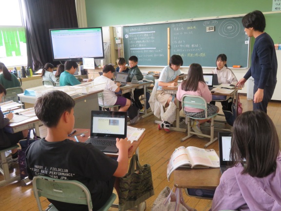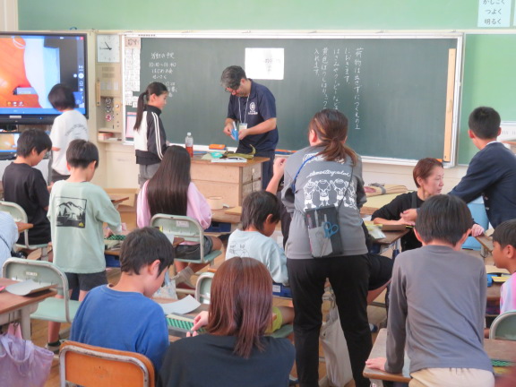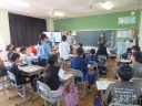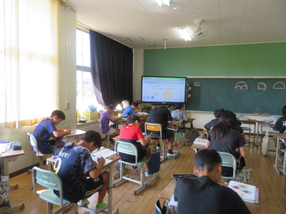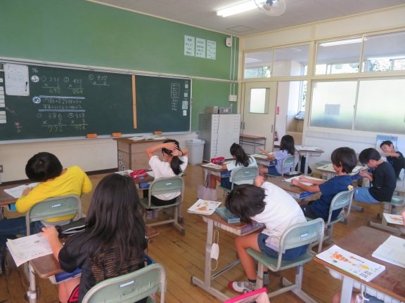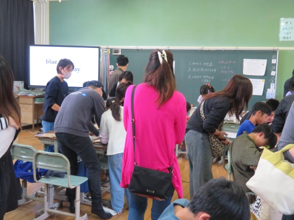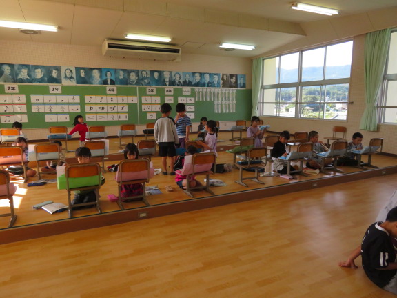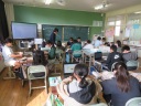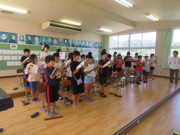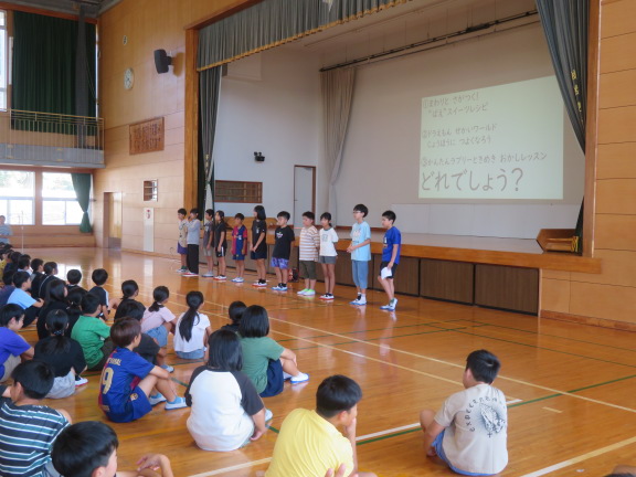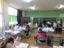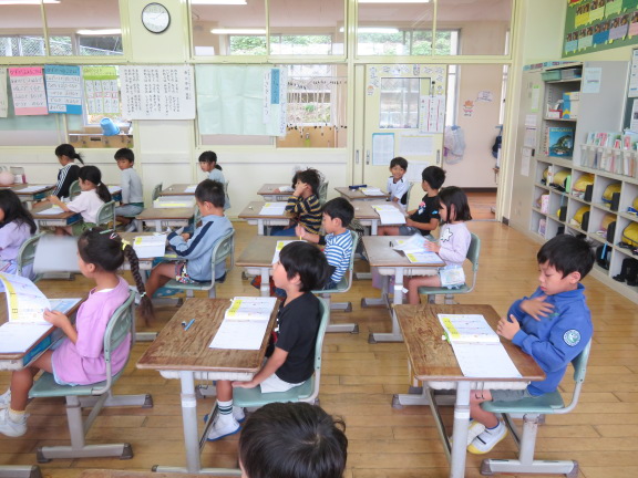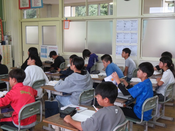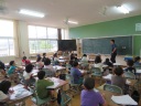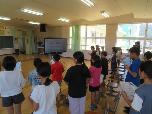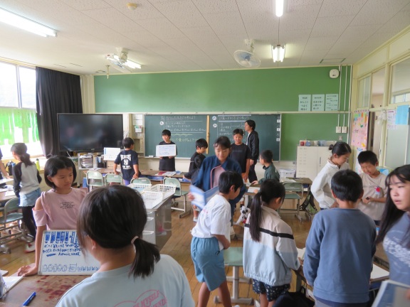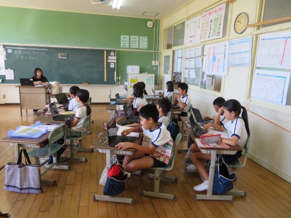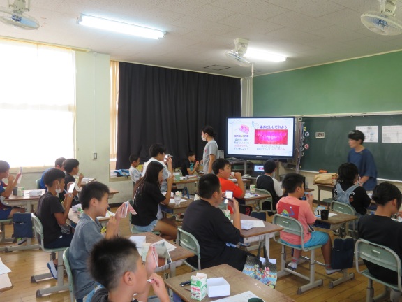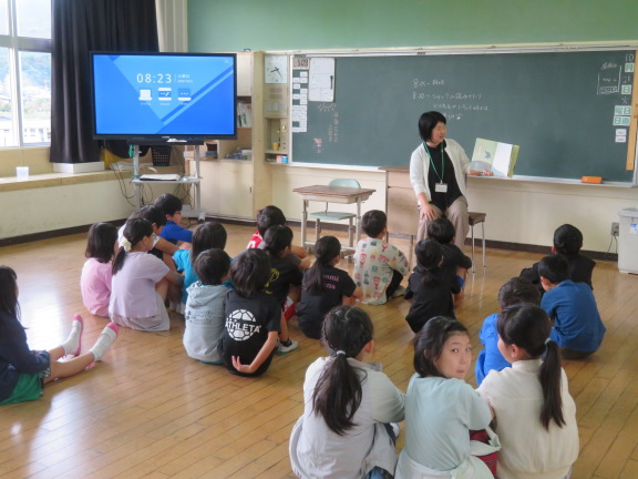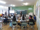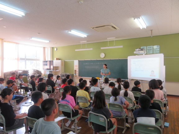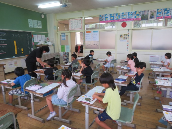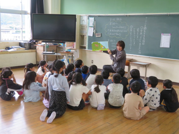 この日は、研究授業として公開し、町内の英語・外国語関係の先生方が参観されました。たくさんの参観者に囲まれながらも、子どもたちは普段と変わらず明るく元気に活動していました。