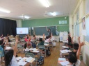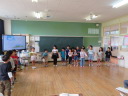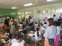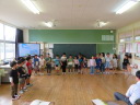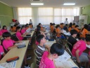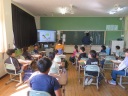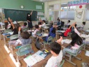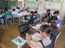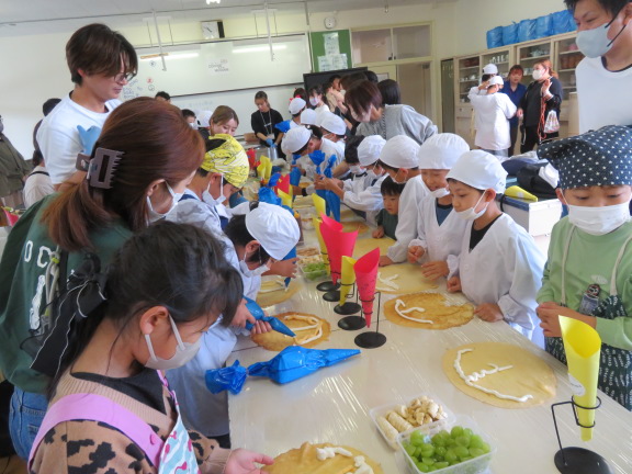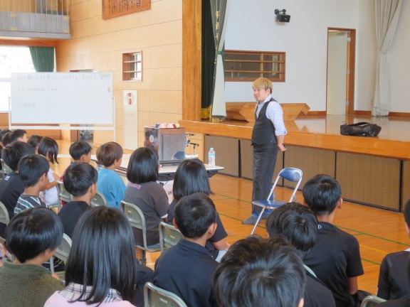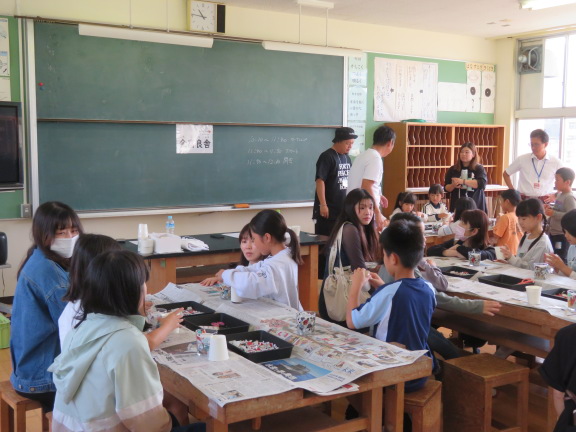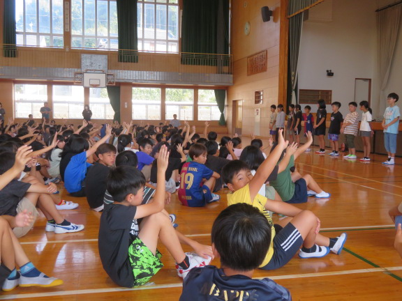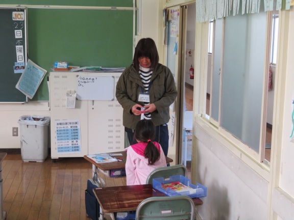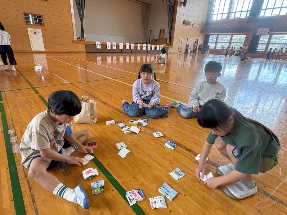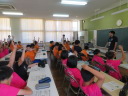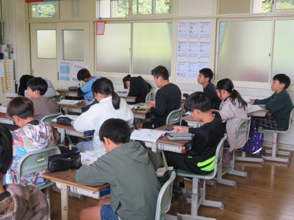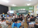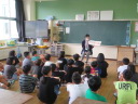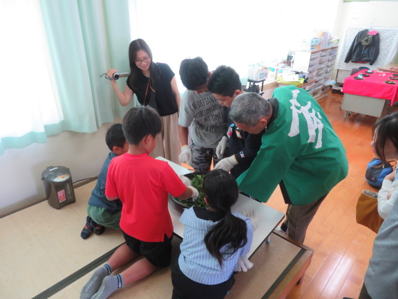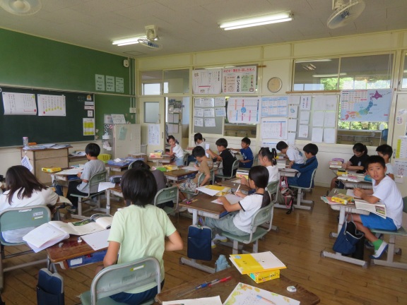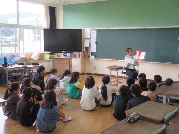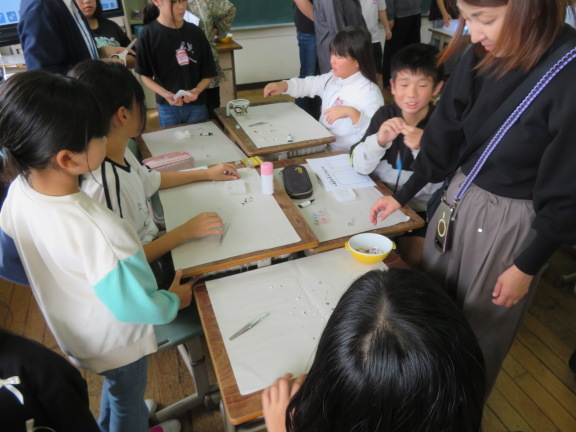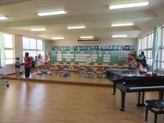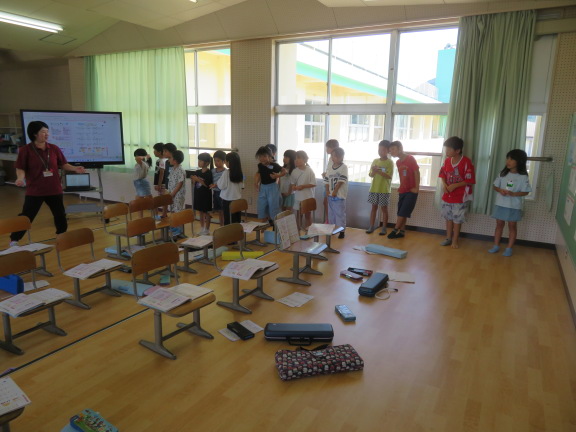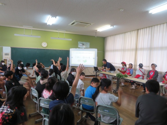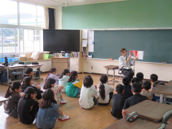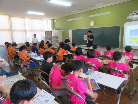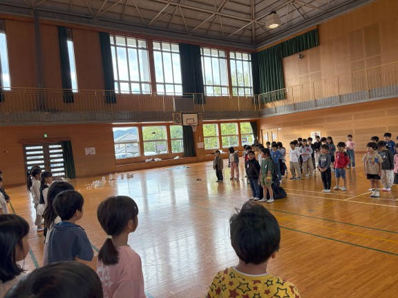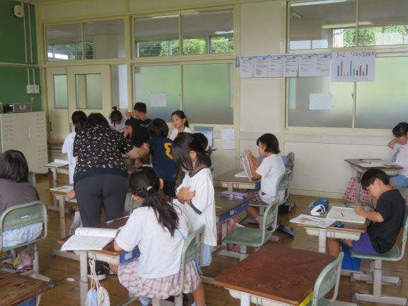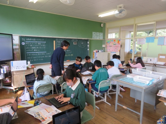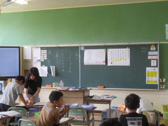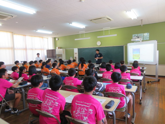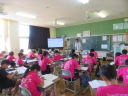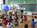 この日は、研究授業として公開し、町内の英語・外国語関係の先生方が参観されました。たくさんの参観者に囲まれながらも、子どもたちは普段と変わらず明るく元気に活動していました。