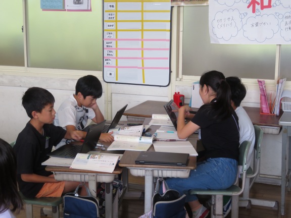 説明文の学習です。筆者が言いたいことはどんなことなのかを、文中から探しています。友達と協力しながら、根拠を持って説明できるように読み取っていました。
