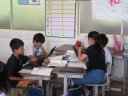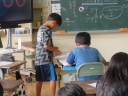 先生の前で暗唱し、合格してシールをもらって嬉しそうでした。