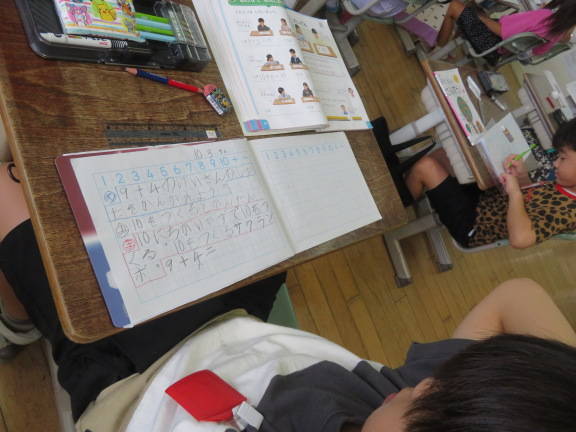まず、16―4の問題を解きながら、復習を行い、これまでの学習を思い出させながら授業を進めます。これからしばらく繰り下がりの学習が続きます。