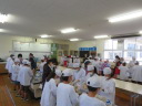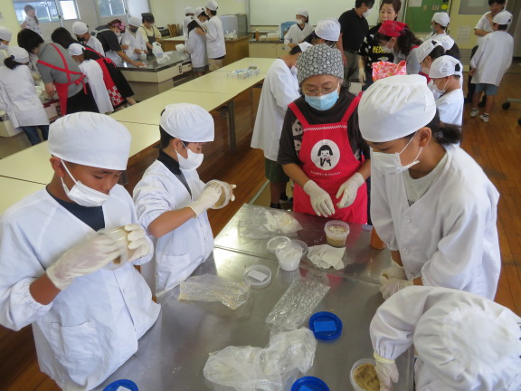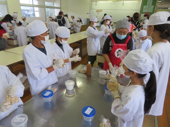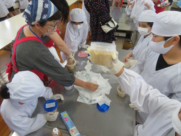 JAとJA婦人部の方をゲストティーチャーとして来校いただき、味噌作りを行いました。始めに、大豆が栄養豊富で暮らしに密着した大切な食べ物であることを学んだ後、