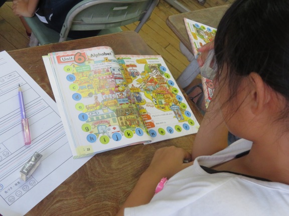 子どもたちは、教科書を見ながら、ALTが話した英単語を、一生懸命探していました。