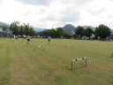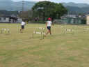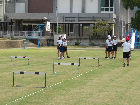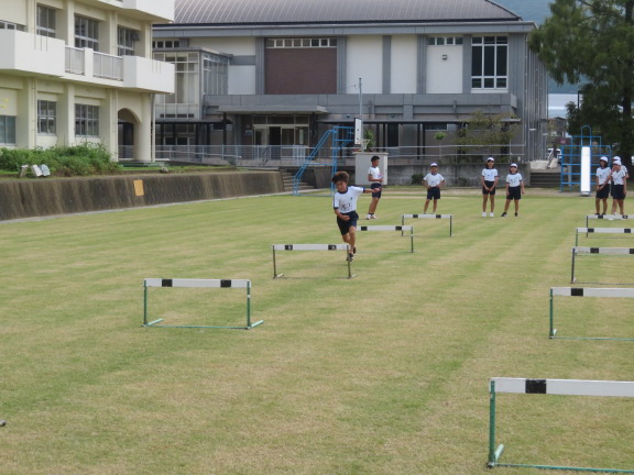 1組は鉄棒とハードル走を、2組はマット運動を行っていました。