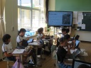 戦争の後もすぐに再開されたことや、賑わいを見せていたことなどを、タブレットを用いて確かめていました。
