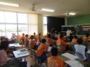 訓練の担当教諭から、「いかのおすし」(知らない人について行かない、知らない人の車に乗らない、等の)指導を行いました。
