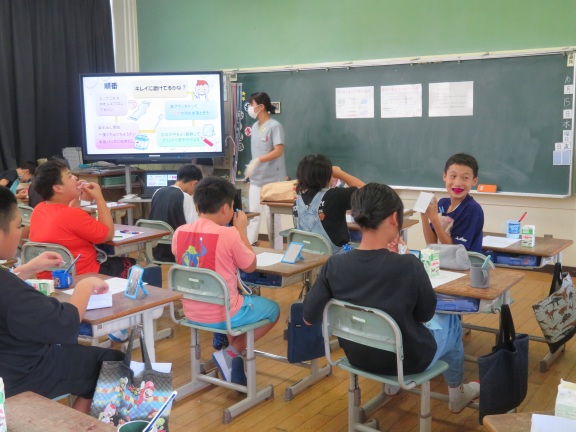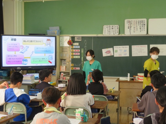 歯科衛生士さんに来校いただき、6年生の子どもたちに指導していただきました。