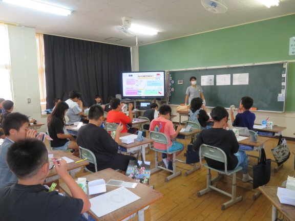 町役場の税務財政課からゲストティーチャーとして来校くださり、税金の歴史や役割などをお話しいただきました。税金が社会をつくるための大切なものであることを学んだ子どもたちは、授業の最後に「お店で代金(消費税)を払うときに、誰かの役になっていると思いながら払います。」と感想を述べていました。