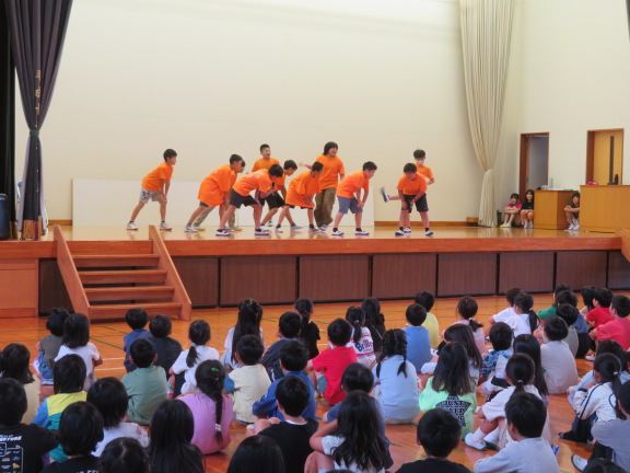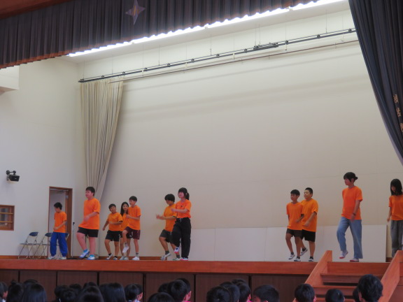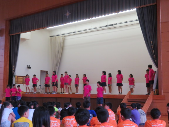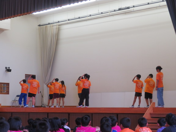 朗読の役、くじら雲の役、子どもたちの役など、それぞれに役割分担し、文章や流れをよく覚えて、しっかり発表できました。