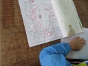 の言葉を学んでいます。○の中にいろいろなものを入れながら、会話を楽しんでいました。