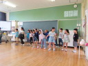 「山のポルカ」の曲に合わせて、リズム打ちの学習をしています。