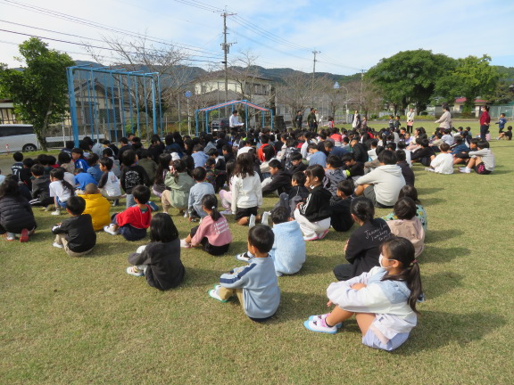 子どもたちは、担任の指示に従い、静かに速やかに運動場に避難しました。