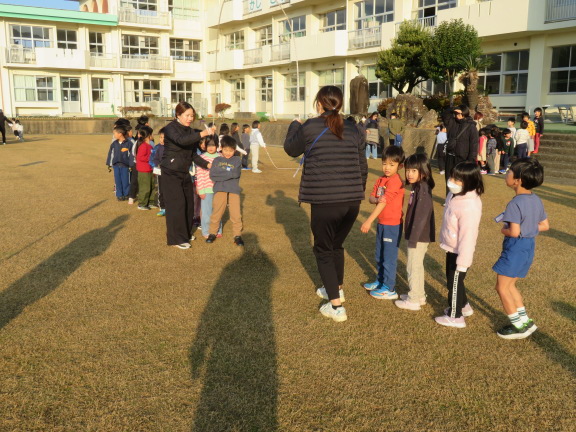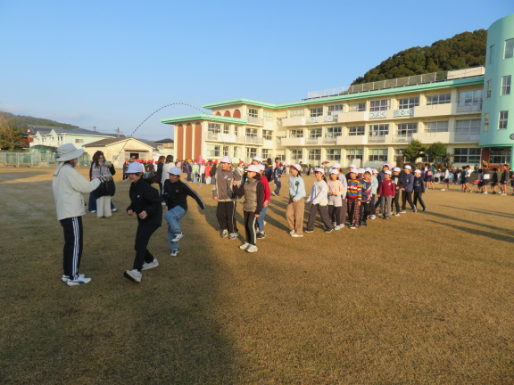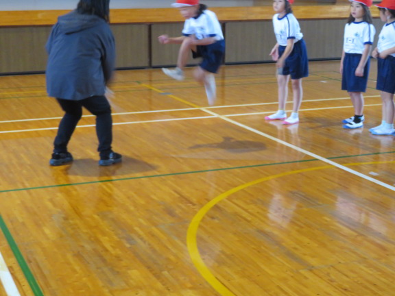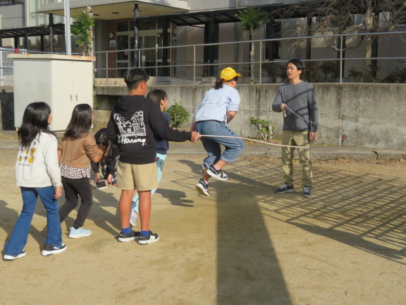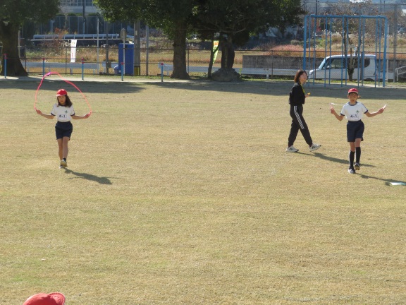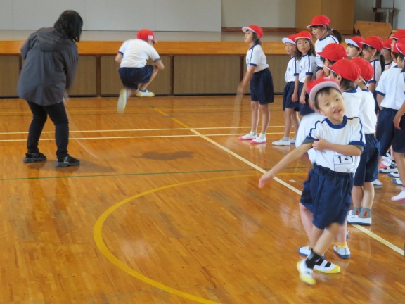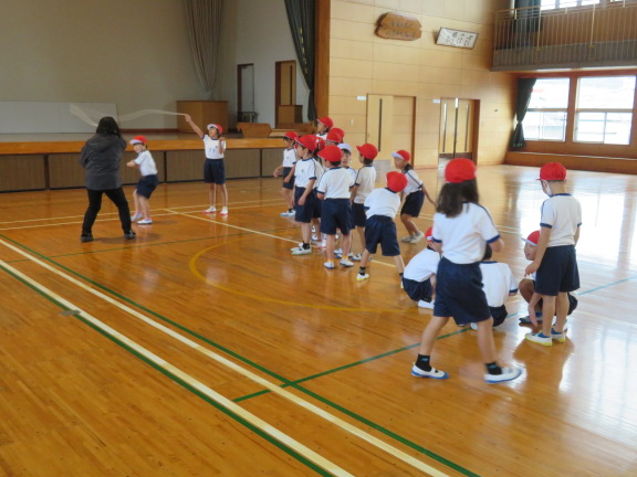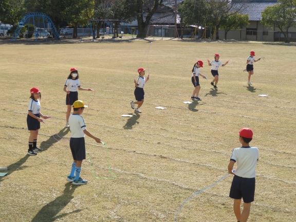 前回し跳び、後ろ回し跳び、駆け足跳び、後ろ駆け足跳びなど、いろいろな技に挑戦していました。ぽかぽかと温かい日差しに恵まれて、気持ちよさそうに跳んでいました。