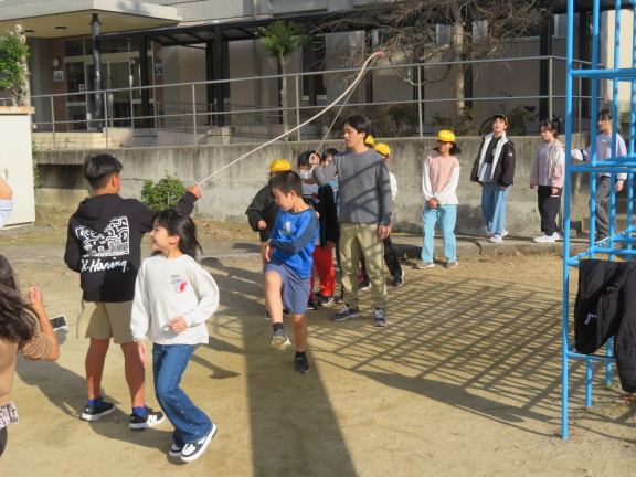 5年生が長縄の練習をしていました。