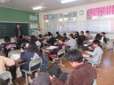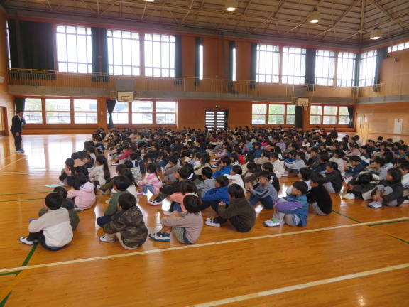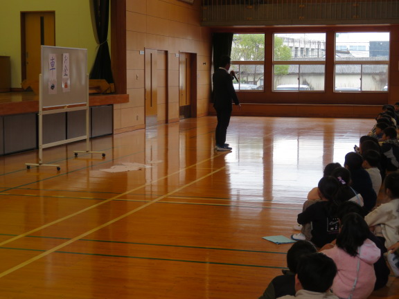 式の終了後は、担当から生活指導の話です。子どもたちは、特に「車」「お金」「火」に気を付けることを学びました。