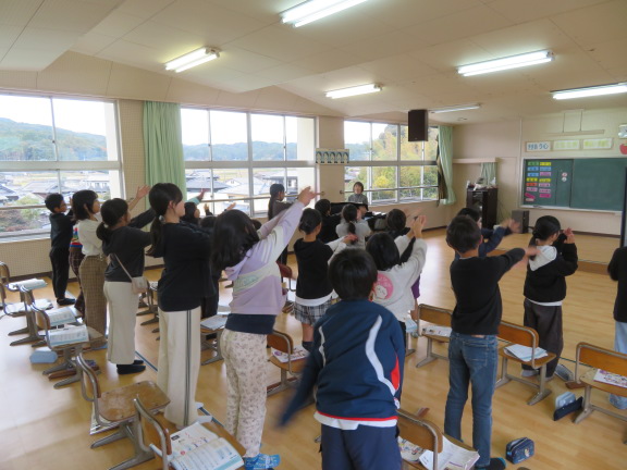 曲の中の「ホッホー」のところでは、動作化を交えながら、きれいな声が遠くまで届くように工夫していました。