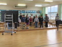 学年で集まって合奏を行っていました。