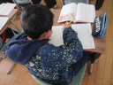 タブレットでも調べることができるのですが、子どもたちは、辞書で手際よく調べています。デジタルもアナログも、バランスよく活用しています。