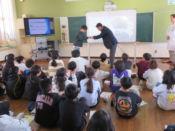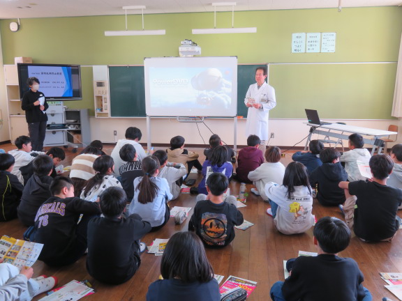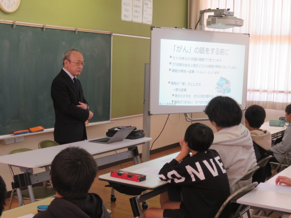 この日は、県教育委員会の主催で、大村市にある障害児入所施設からゲストティーチャーに来校いただき、がん教育を行いました。