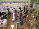 漢字の学習を行っていました。漢字練習帳を用いて練習し、先生が確認しています。