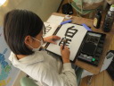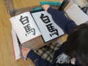 「白馬」の字を練習していました。「馬」の字は画数が多くてバランスが難しい字ですが、みんな上手に書いていました。
