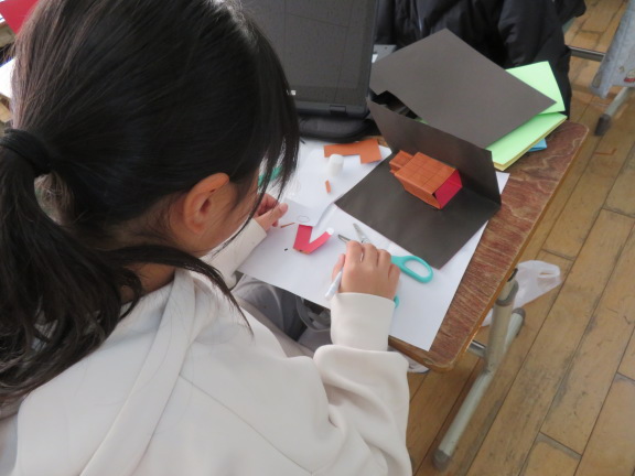 飛び出す仕組みを使って、カードを作る学習です。