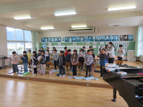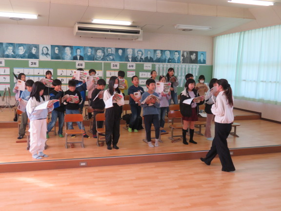 合唱に取り組んでいました。曲は「あのね、のねずみは」と「夕やけこやけ」です。
