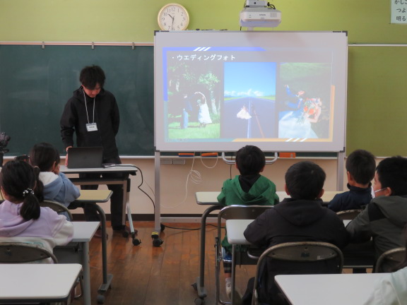 本校の卒業生でカメラマンの方にゲストティーチャーとして来校していただきました。なぜカメラマンになったのか、カメラマンの仕事、子どもたちに伝えたいことなどをお話しいただきました。経験は夢につながること、経験をしておくことが大切な事など、自身の思いを熱く語っていただきました。子どもたちにとって、未来を描く貴重な時間になりました。