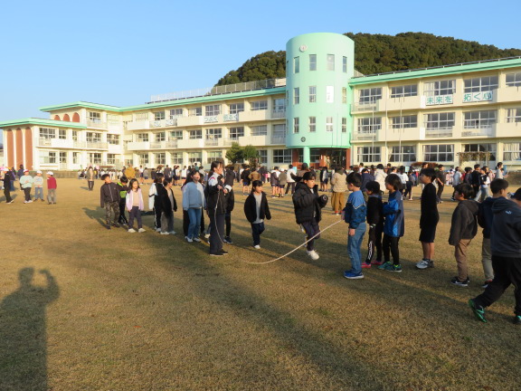 各クラスが目標の回数に向かって3分間跳び続けます。