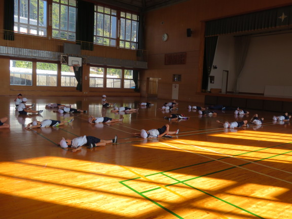 授業の初めに準備体操と柔軟体操を行っています。