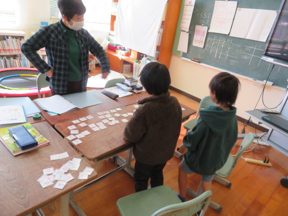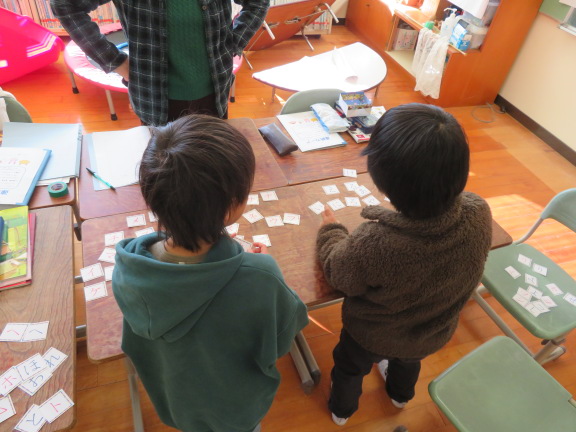 この時間は、「あ」と「ア」など、ひらがなとカタカナのカードを合わせる活動を行っていました。