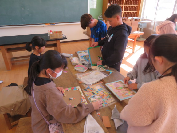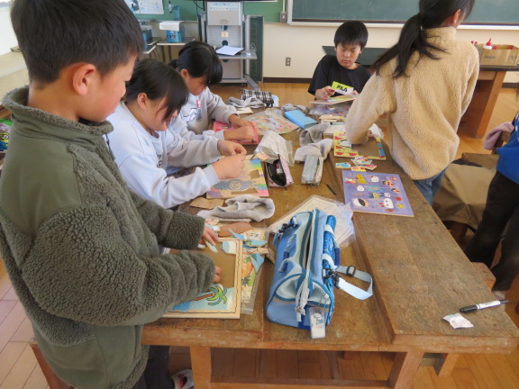 みんな完成したので、今日は友達のジグソーパズルと交換して楽しんでいました。