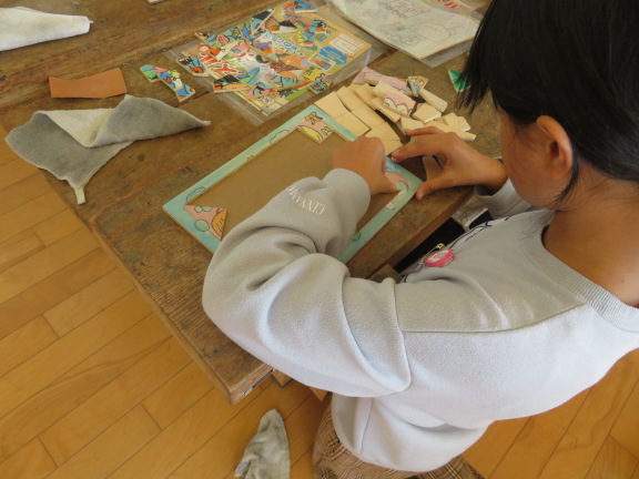 糸鋸を使って木の板を切り、ジグソーパズルを作りました。
